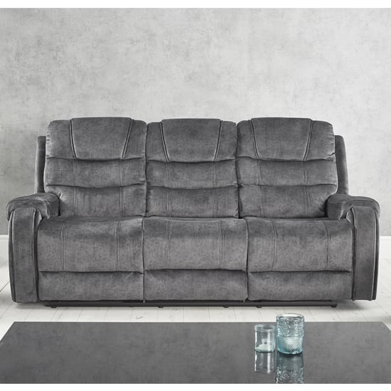 Cora Velvet Recliner 3 Seater Sofa In Dark Grey