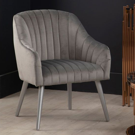 Luxury Upholstered Velvet Armchair With Silver Legs In Grey